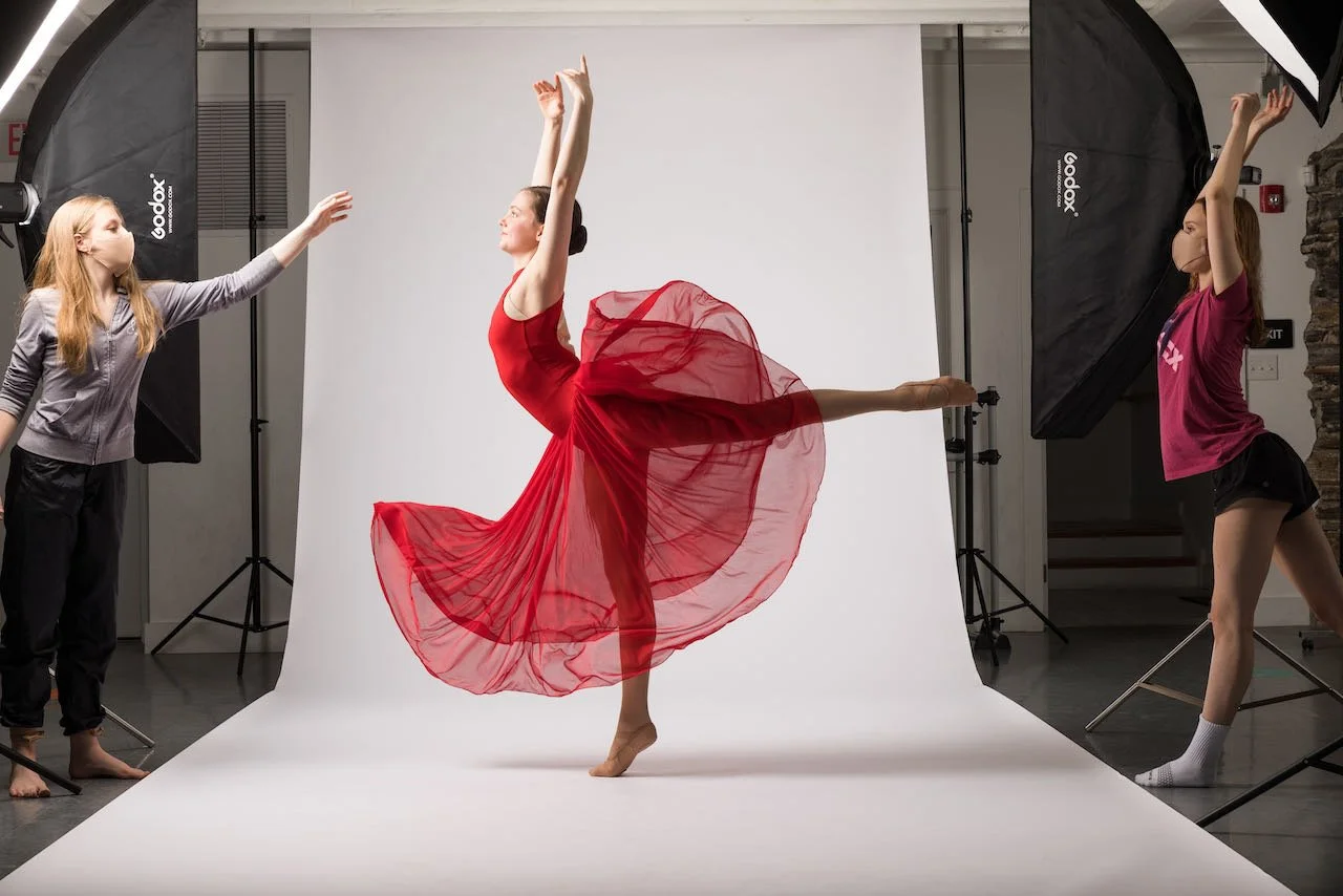 One way in which I use Photoshop a lot is to polish up the backdrops in my dance portraits. The backdrops I use are 9 foot wide rolls of paper. 9 feet might sound like a lot but it's often not wide enough for a dancer's entire body to fit on it. It's also almost never wide enough to fill the whole frame of the photo.